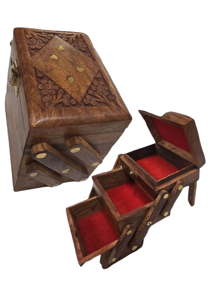 Keep your precious jewelry safe and organized with this beautifully crafted Wooden Jewelry Box. Made from high-quality wood, this box features a compact design while providing enough space to store rings, earrings, bracelets, and other accessories. Its classic and elegant finish makes it a perfect addition to your dressing table or a thoughtful gift for a loved one.